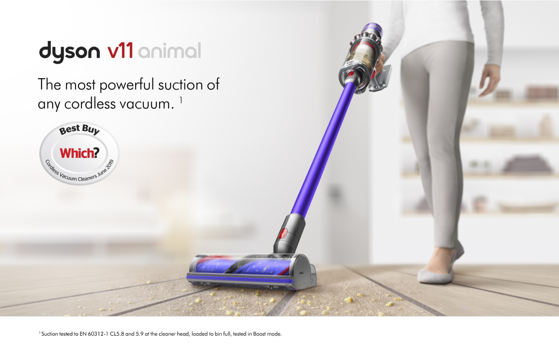 Suction tested to EN 60312-1 CL 5.8 and CL5.9 at the hose/wand, loaded to bin full, tested in boost mode